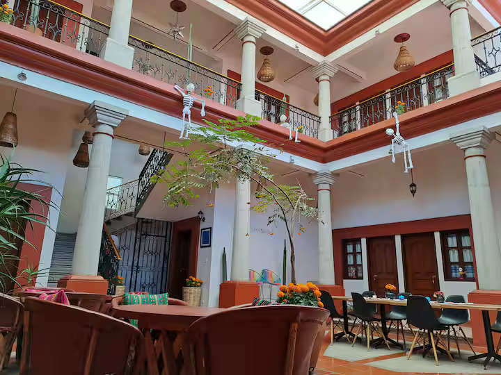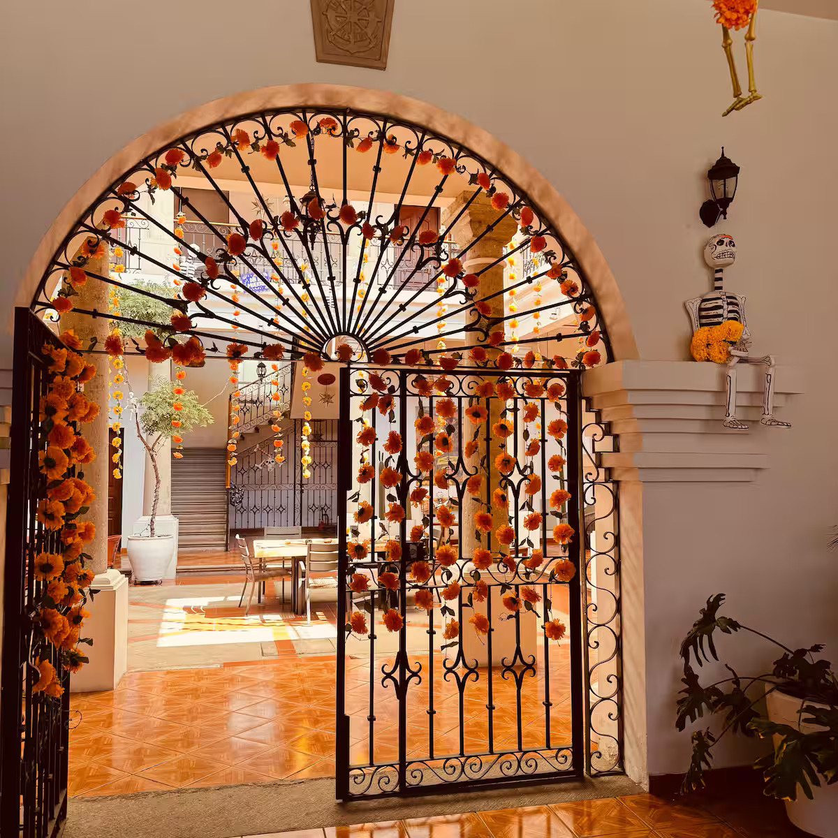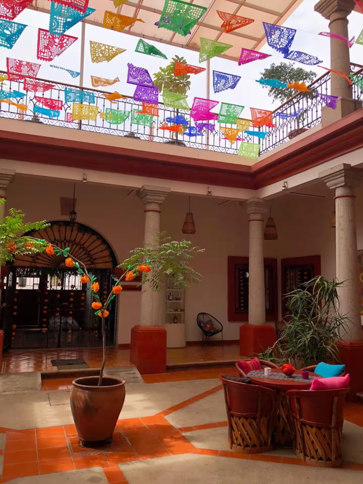Our home for the week, Casa Agave is a lovingly restored 18th-century colonial gem, nestled just three blocks from Oaxaca’s vibrant city market and the lively Zócalo. With its graceful arches, sunlit courtyards, and hand-carved details, this UNESCO-protected home invites you to step back in time while enjoying every modern comfort.
